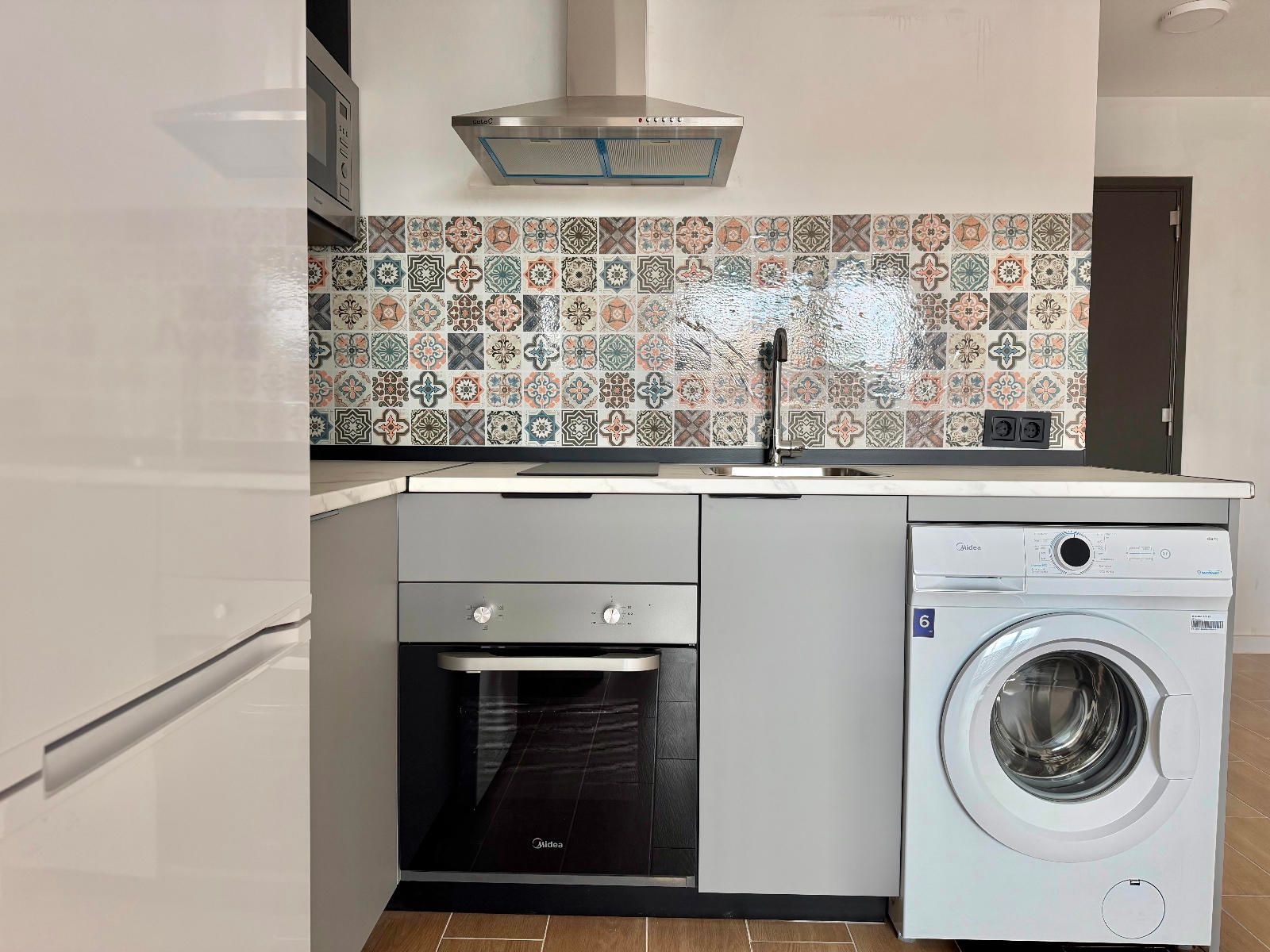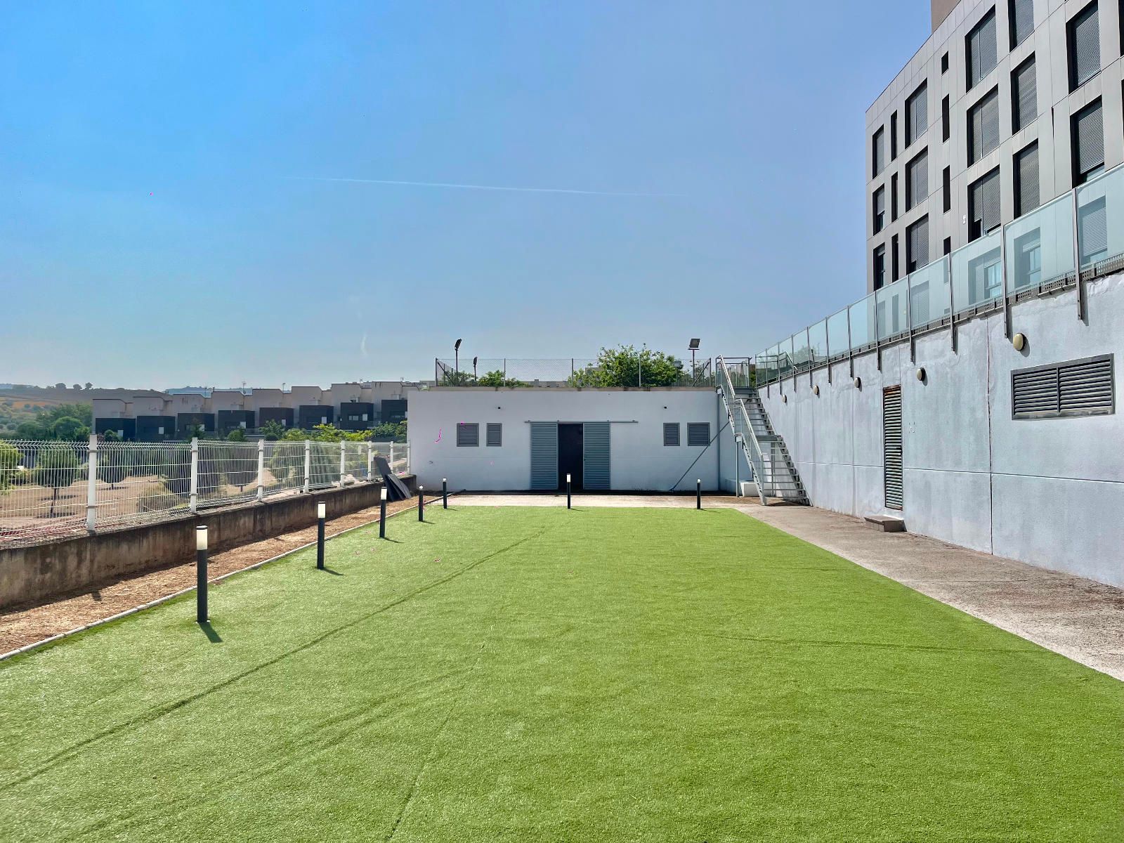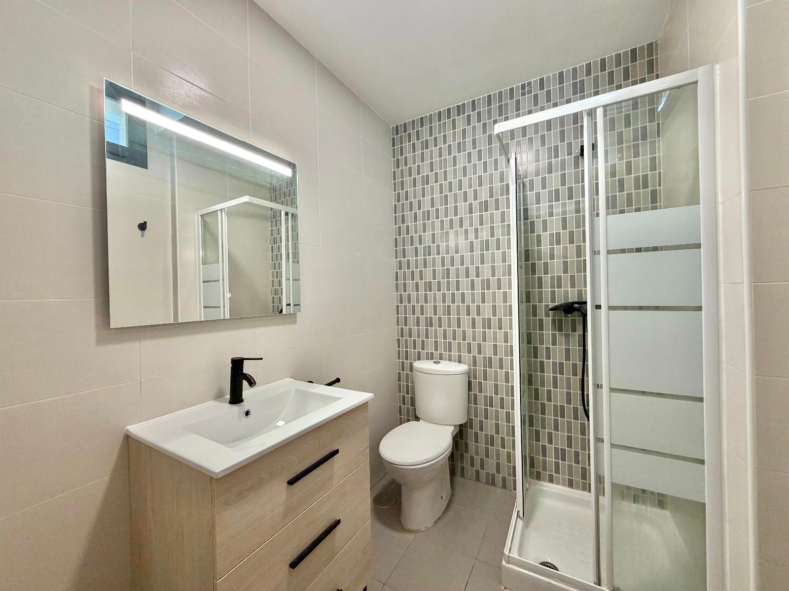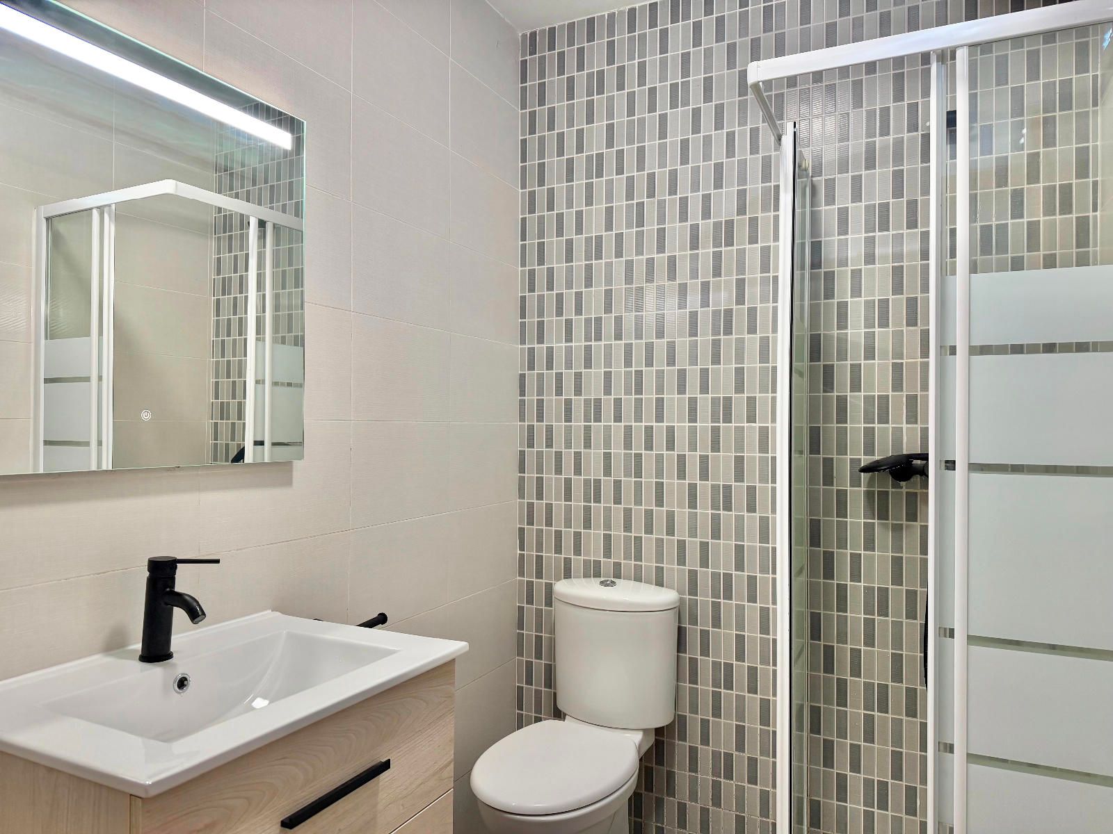 El inmueble es diáfano con todo en un solo espacio menos el baño, tiene una cocina totalmente equipada con todos los electrodomésticos y un baño completo con plato de ducha y ventana. El inmueble cuenta con un patio de unos 15m2, se encuentra ubicado en una finca con piscina de gran tamaño y pista de padel.