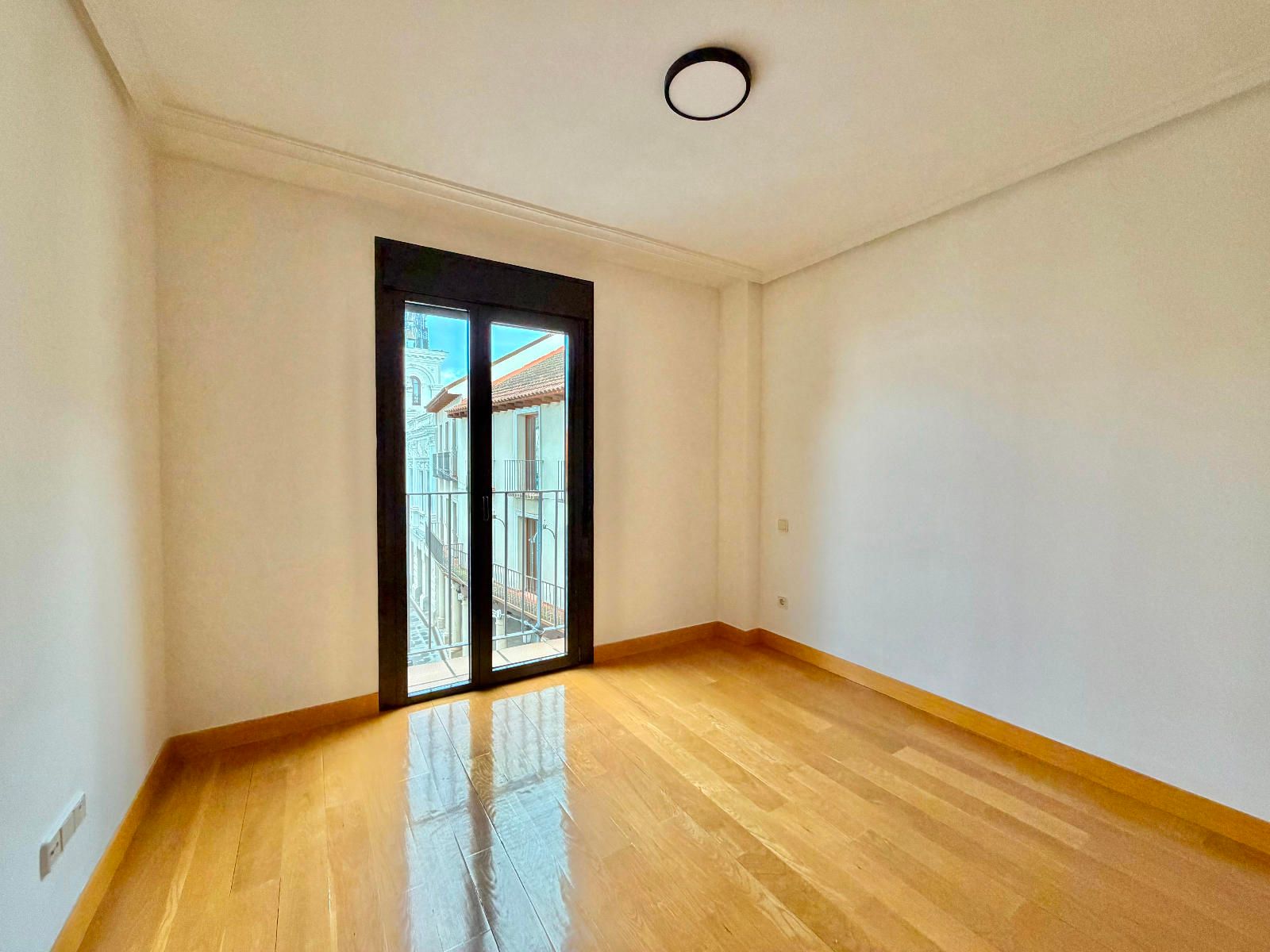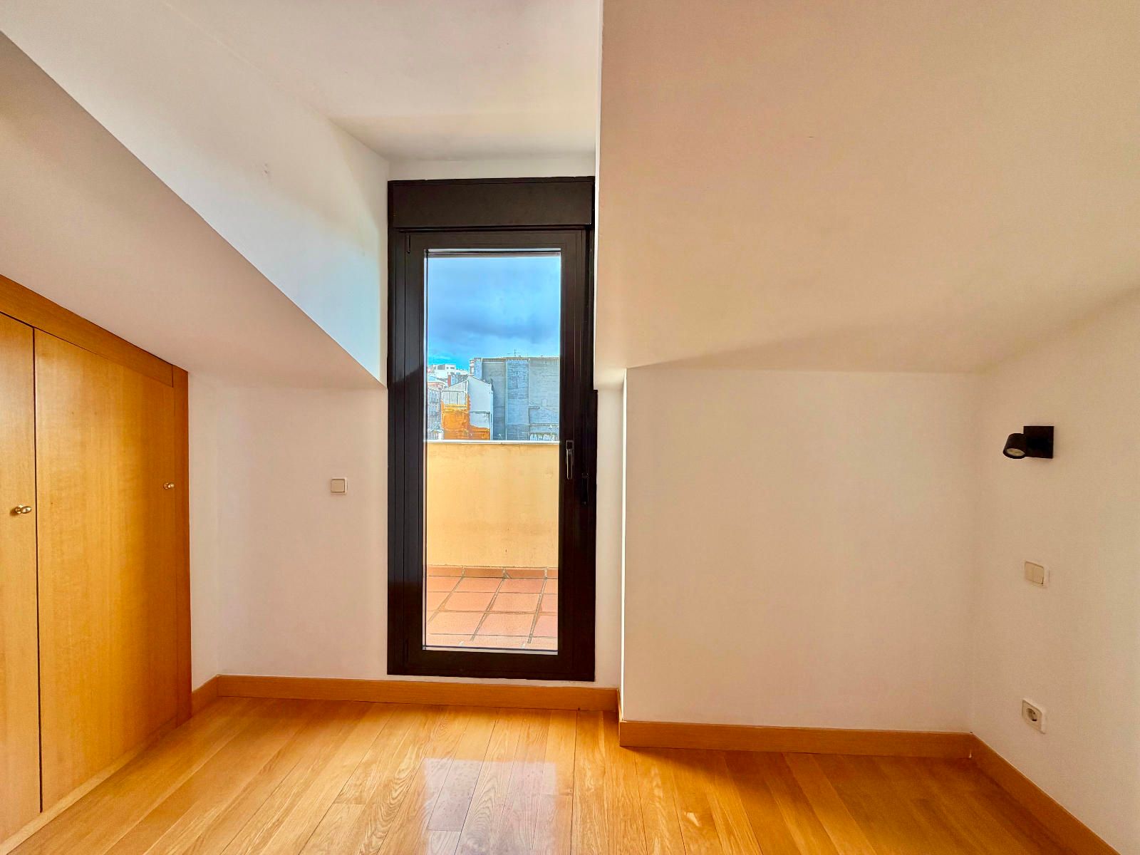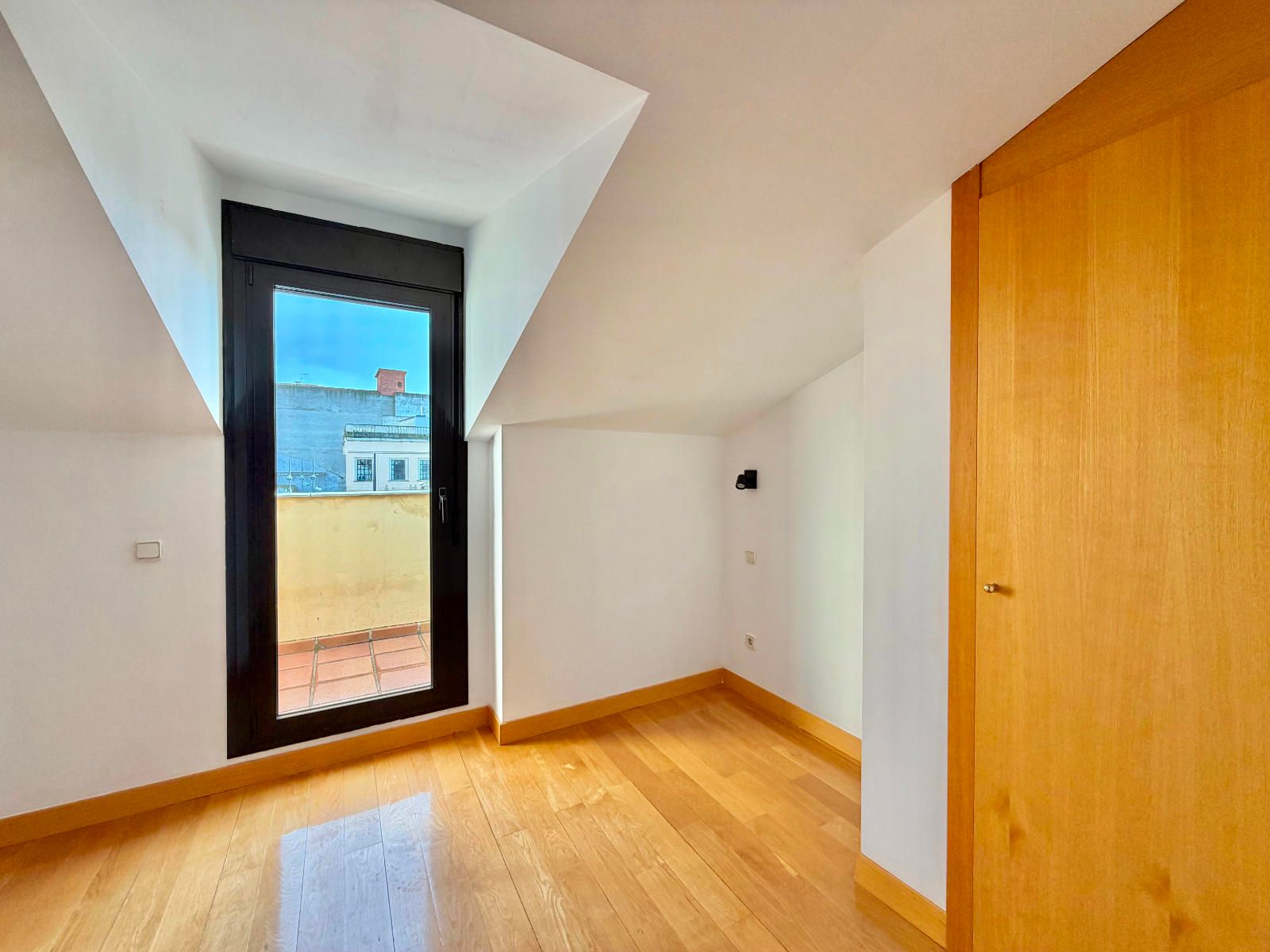 PLANTA SUPERIOR - Dos habitaciones con armarios empotrados, una de ellas con ventana velux con persiana eléctrica y la otra con salida a una terraza con vistas a la plaza Mayor, además otro baños completo con bañera.