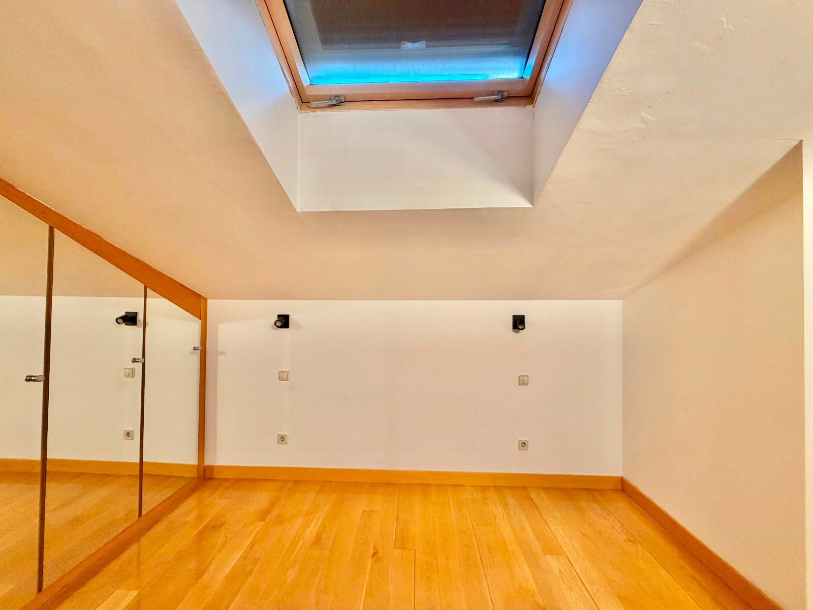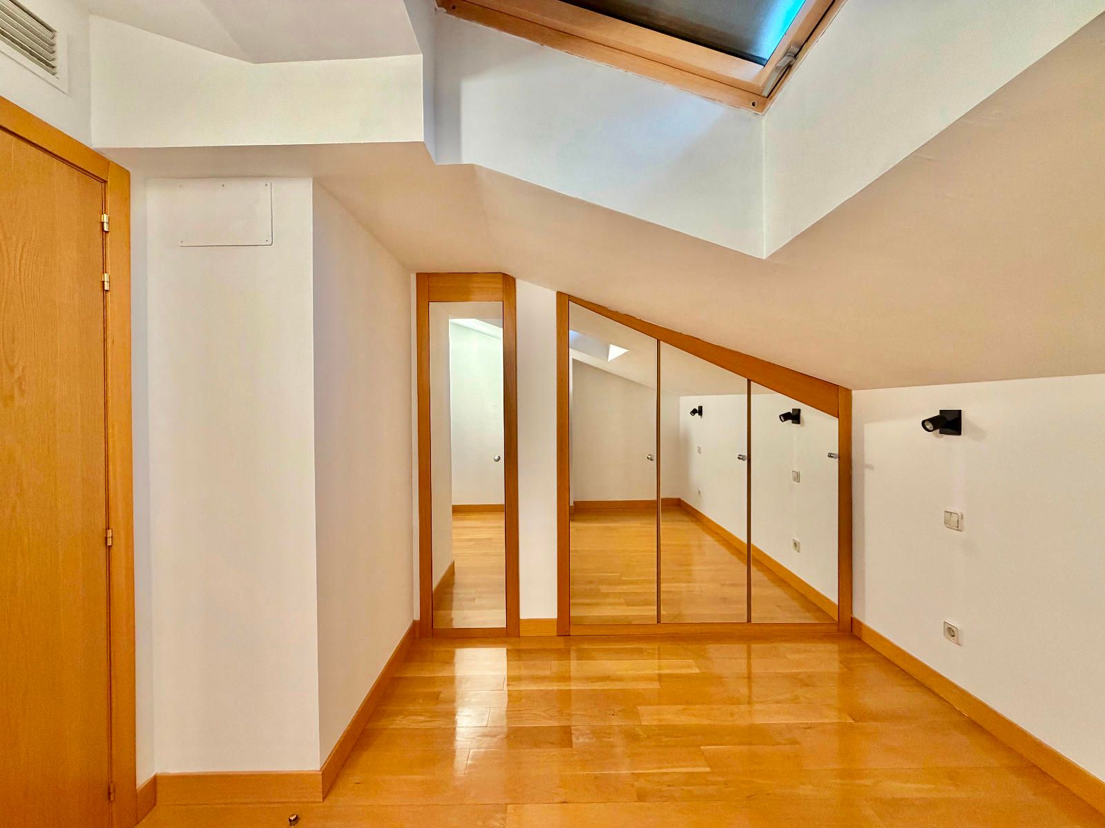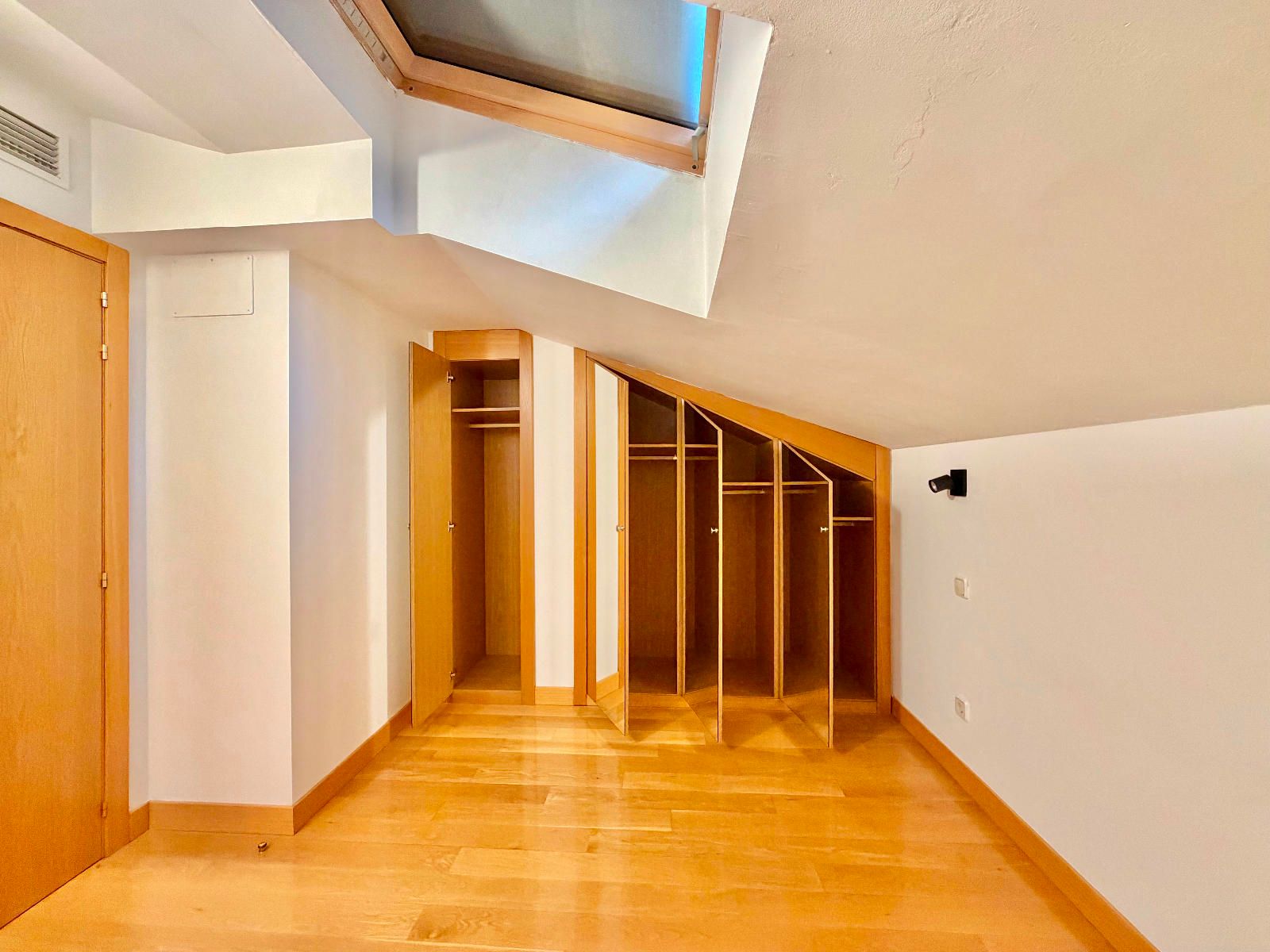 PLANTA SUPERIOR - Dos habitaciones con armarios empotrados, una de ellas con ventana velux con persiana eléctrica y la otra con salida a una terraza con vistas a la plaza Mayor, además otro baños completo con bañera.