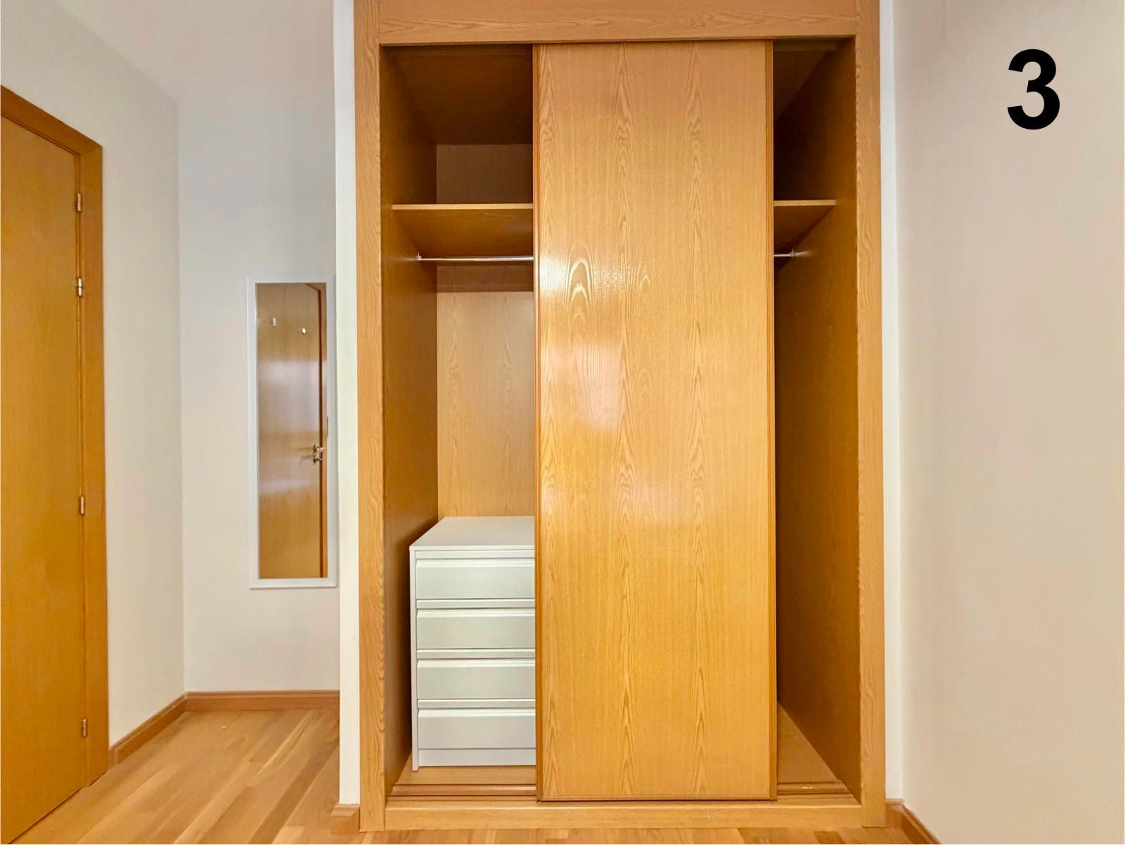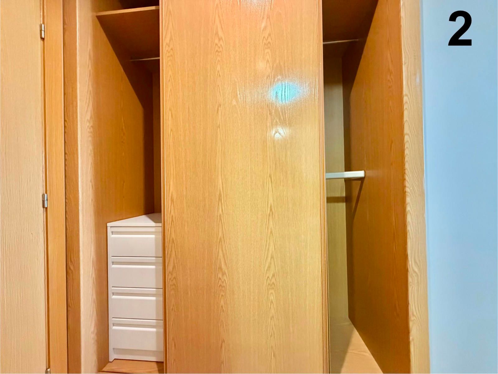 - Amplio armario con varias barras, maletero en la zona de arriba y cajoneras