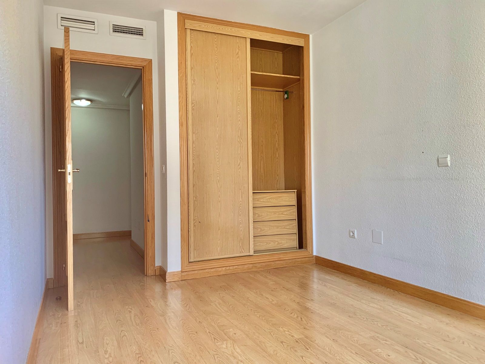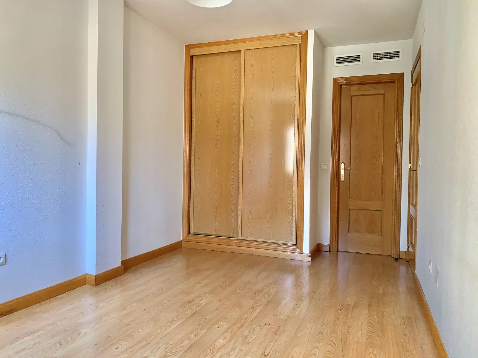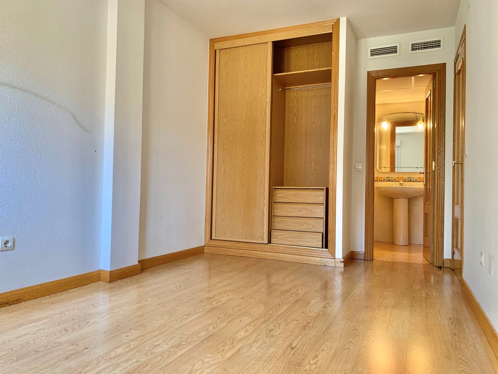 El piso consta de dos dormitorios y dos baños, uno de ellos en suite con la habitación principal, el salón es muy amplio y la vivienda está sin amueblar. Es un edificio construido en 2001 con altas calidades constructivas, armarios empotrados y vestidos en ambas habitaciones, cocina totalmente amueblada, aire acondicionado por conductos y calefacción de gas natural individual.