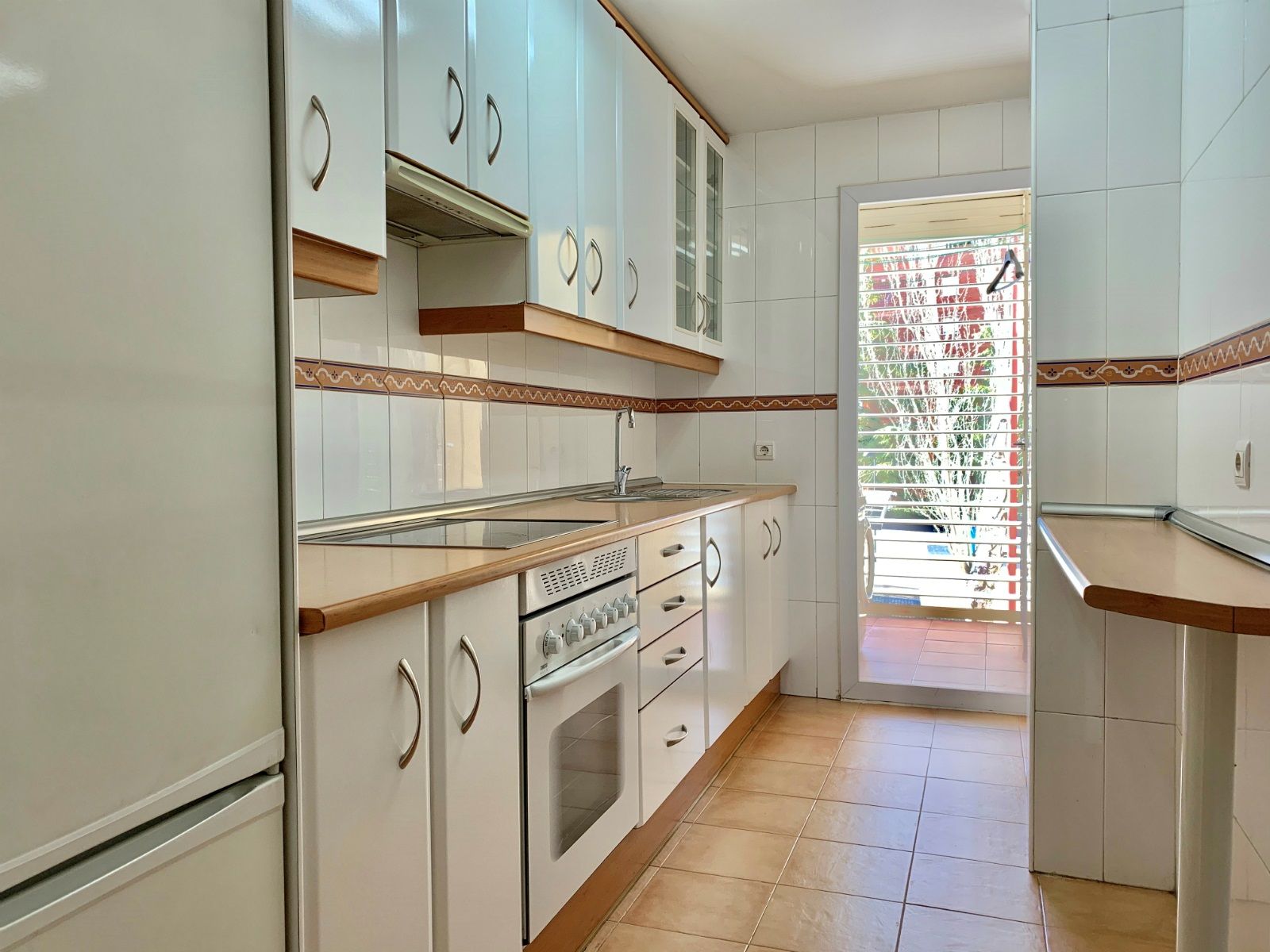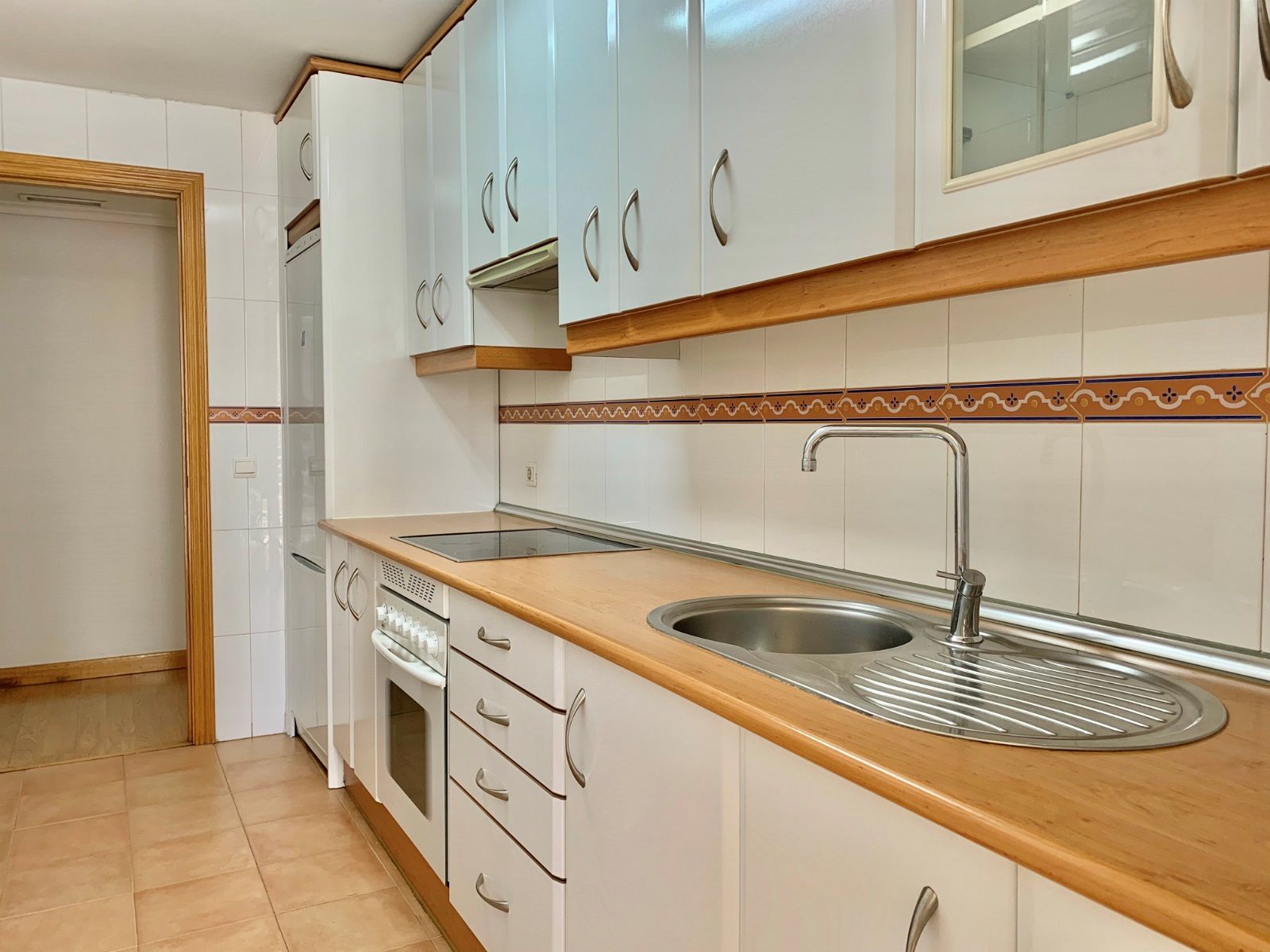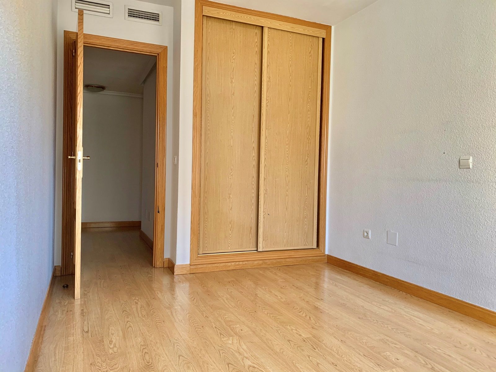 El piso consta de dos dormitorios y dos baños, uno de ellos en suite con la habitación principal, el salón es muy amplio y la vivienda está sin amueblar. Es un edificio construido en 2001 con altas calidades constructivas, armarios empotrados y vestidos en ambas habitaciones, cocina totalmente amueblada, aire acondicionado por conductos y calefacción de gas natural individual.