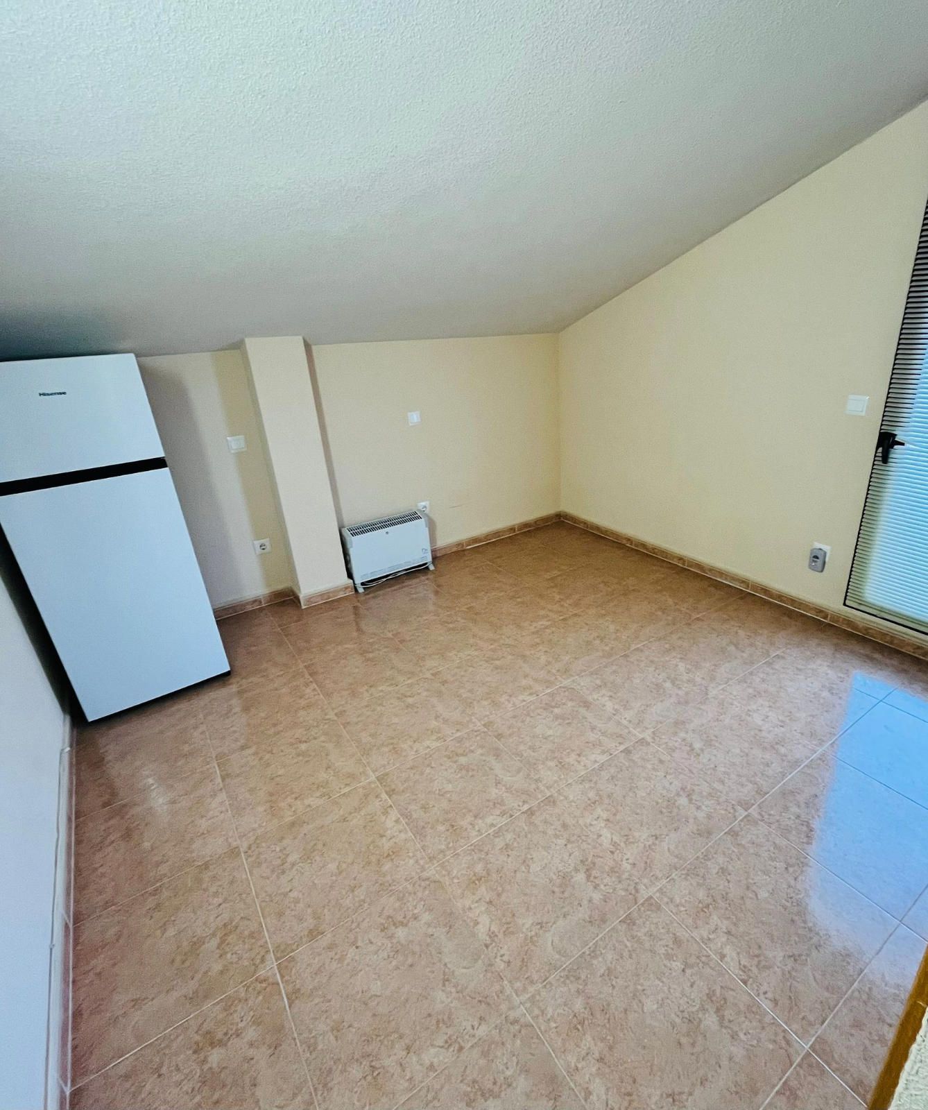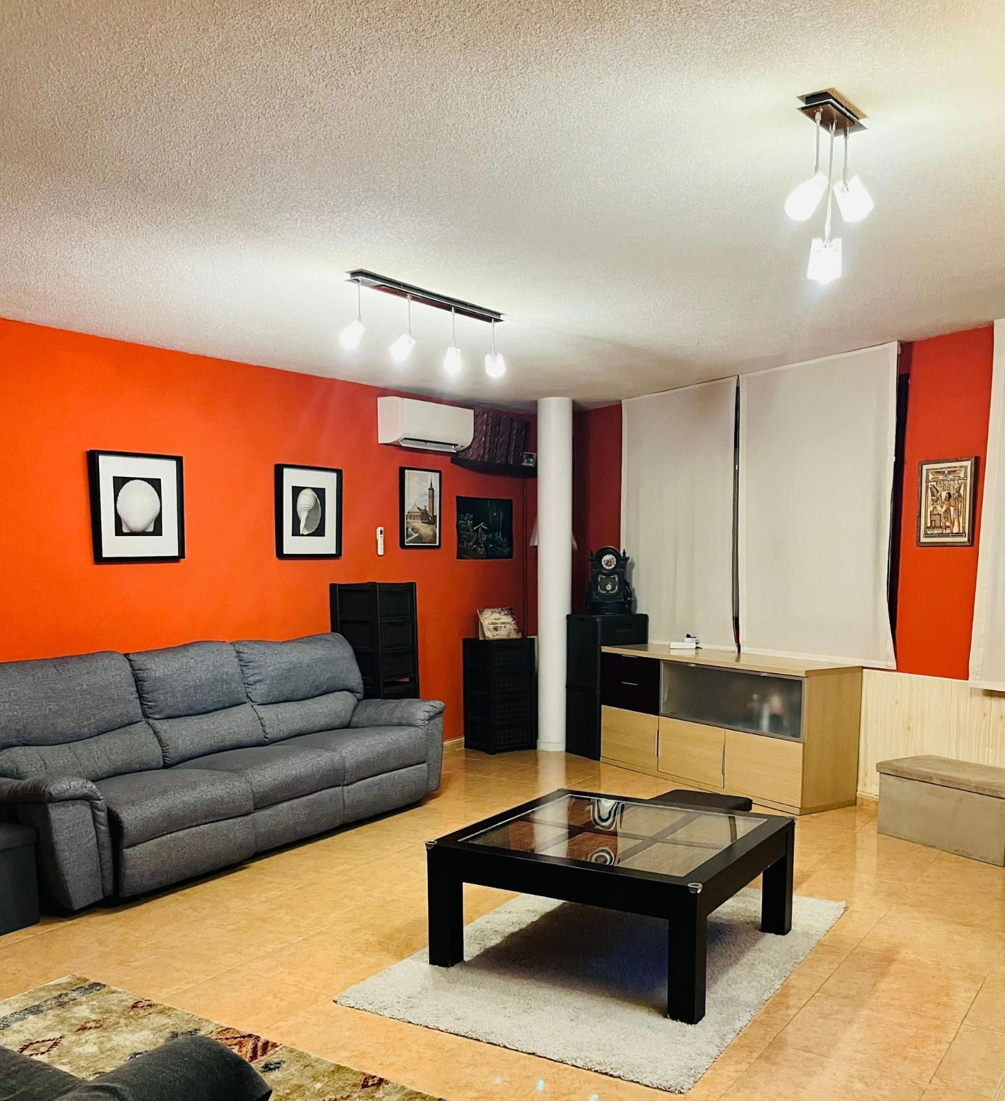 PLANTA INFERIOR - Recibidor que da acceso a un amplio salón muy luminoso con un gran ventanal a la calle, cocina totalmente amueblada y muy bien aprovechada, que también tiene luz natural a través de una ventana a la calle, una habitación con armario empotrado y un baño completo con ventana.