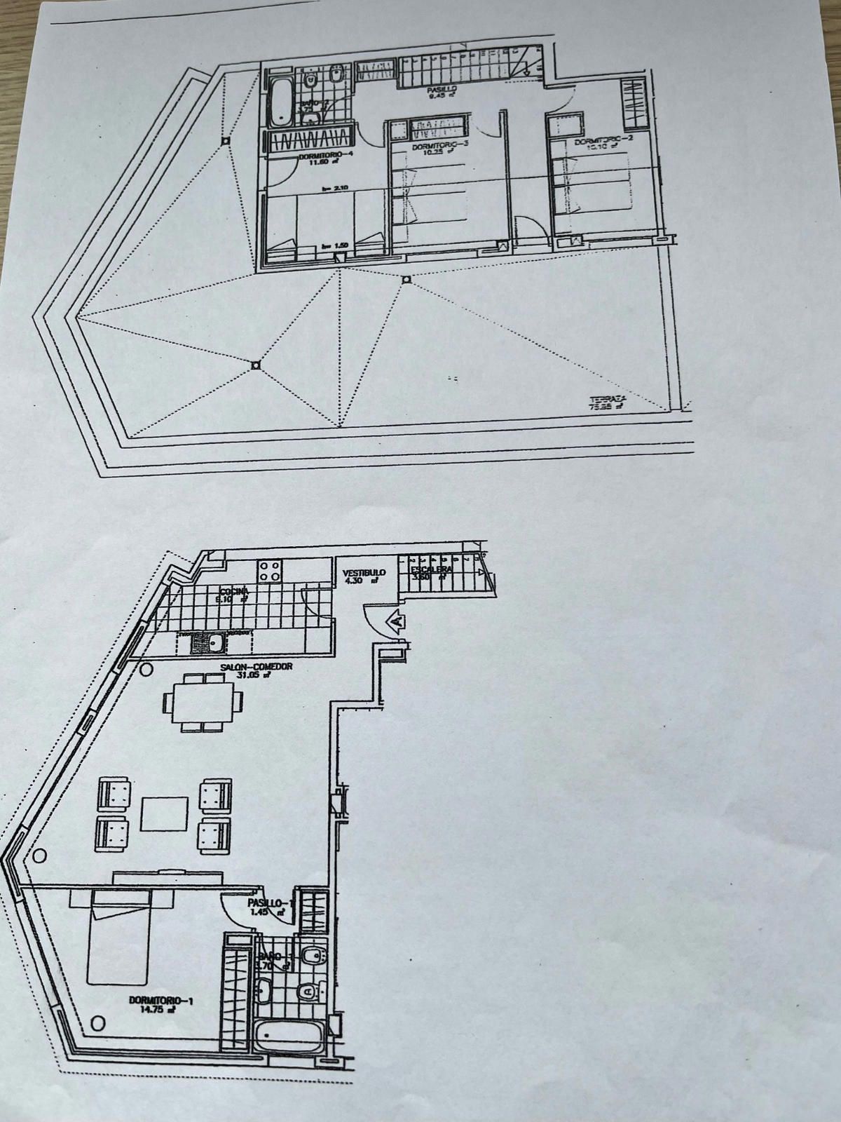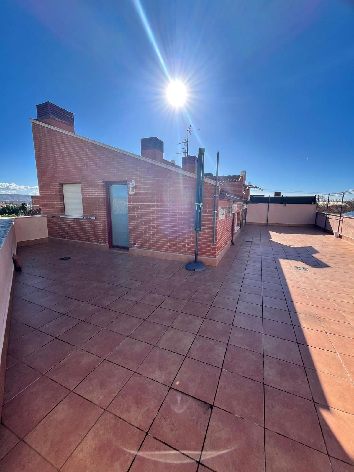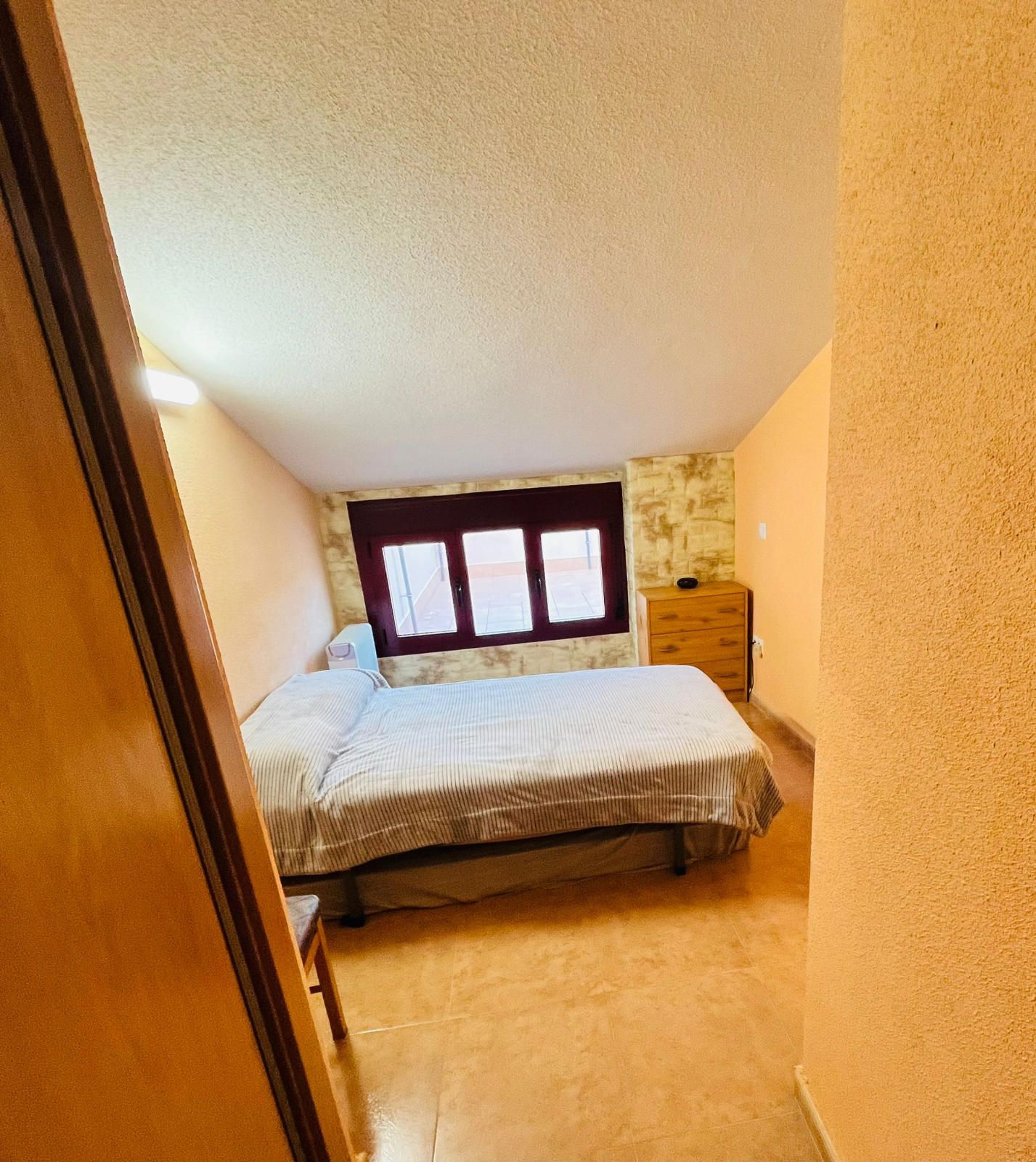 PLANTA SUPERIOR - Tres habitaciones, todas ellas con armarios empotrados totalmente vestidos y muy luminosas, además hay dos armarios empotrados en pasillos, un baño completo con ventana y desde esta planta hay salida a una gran terraza en forma de L de unos 75m2.