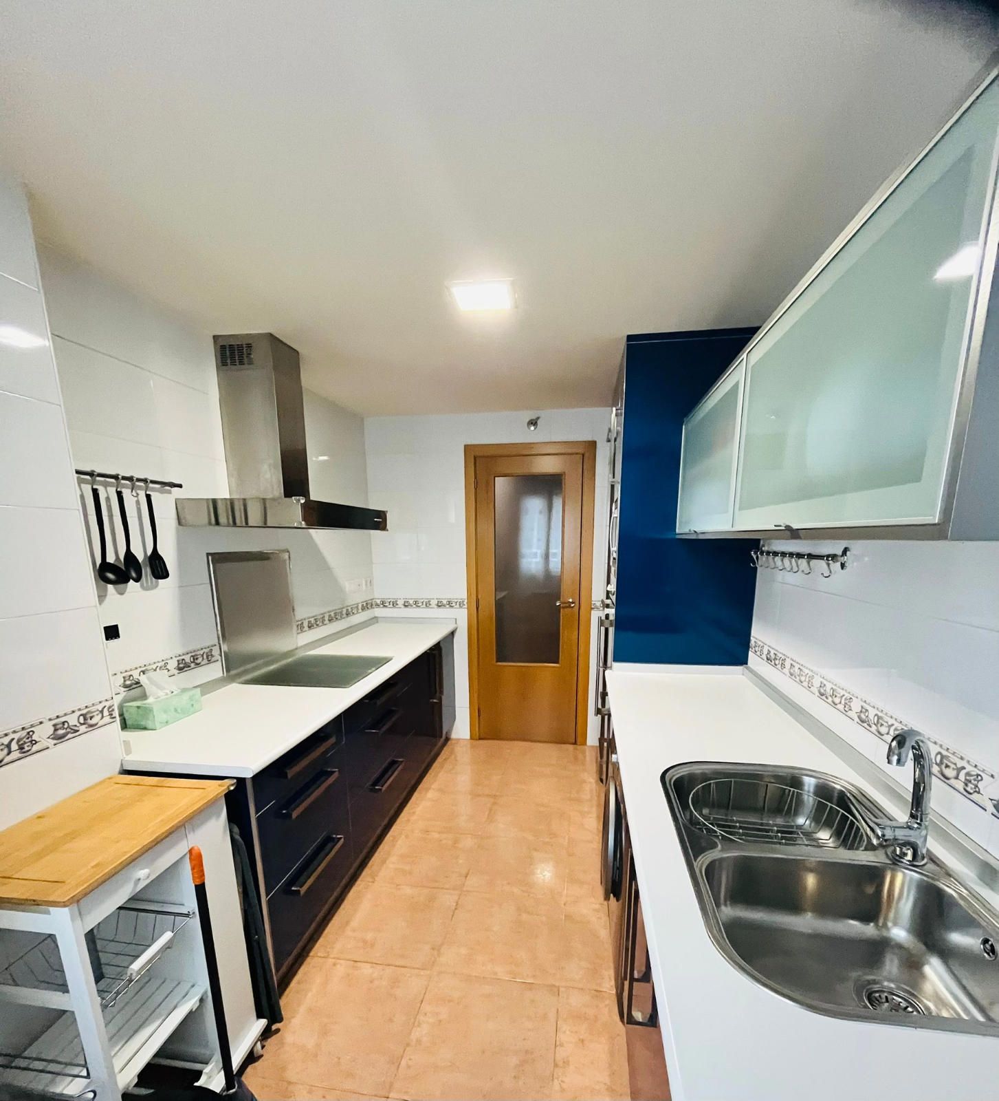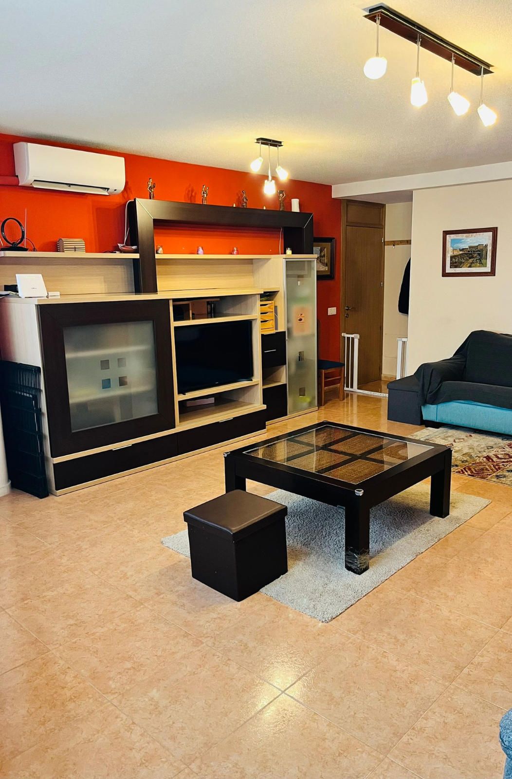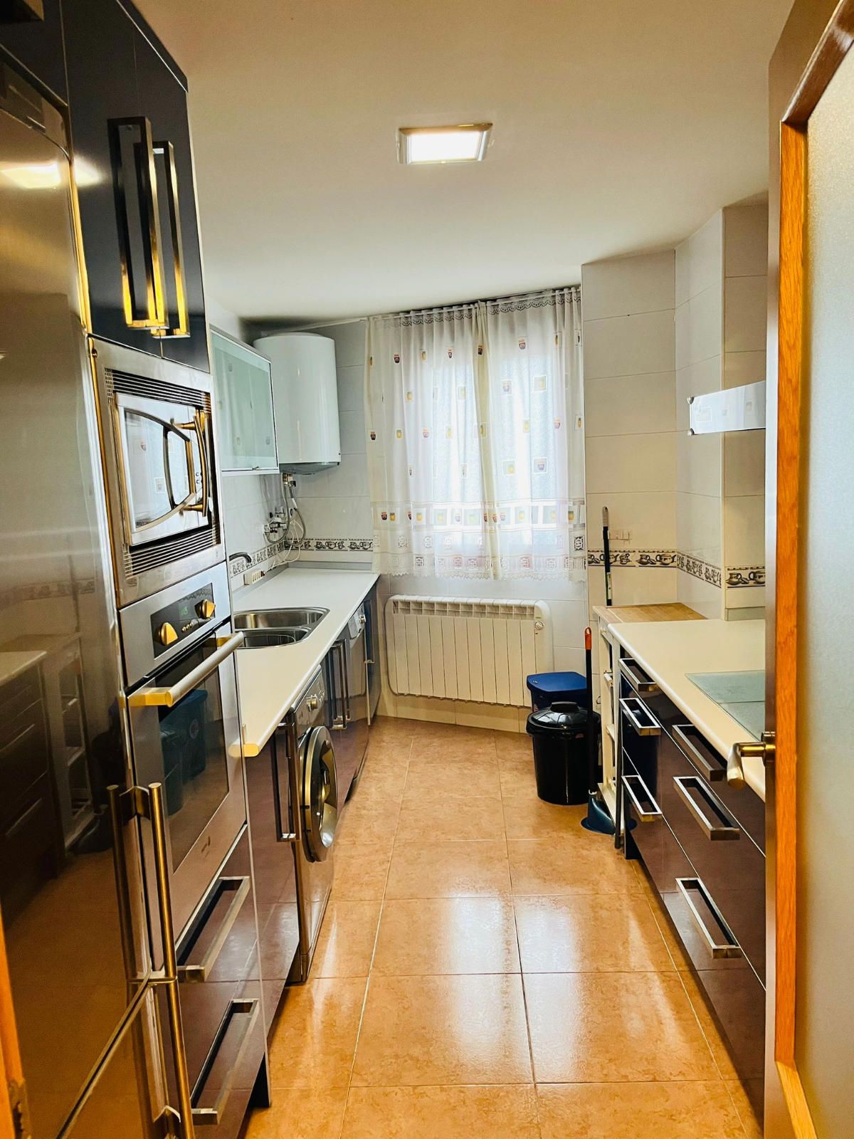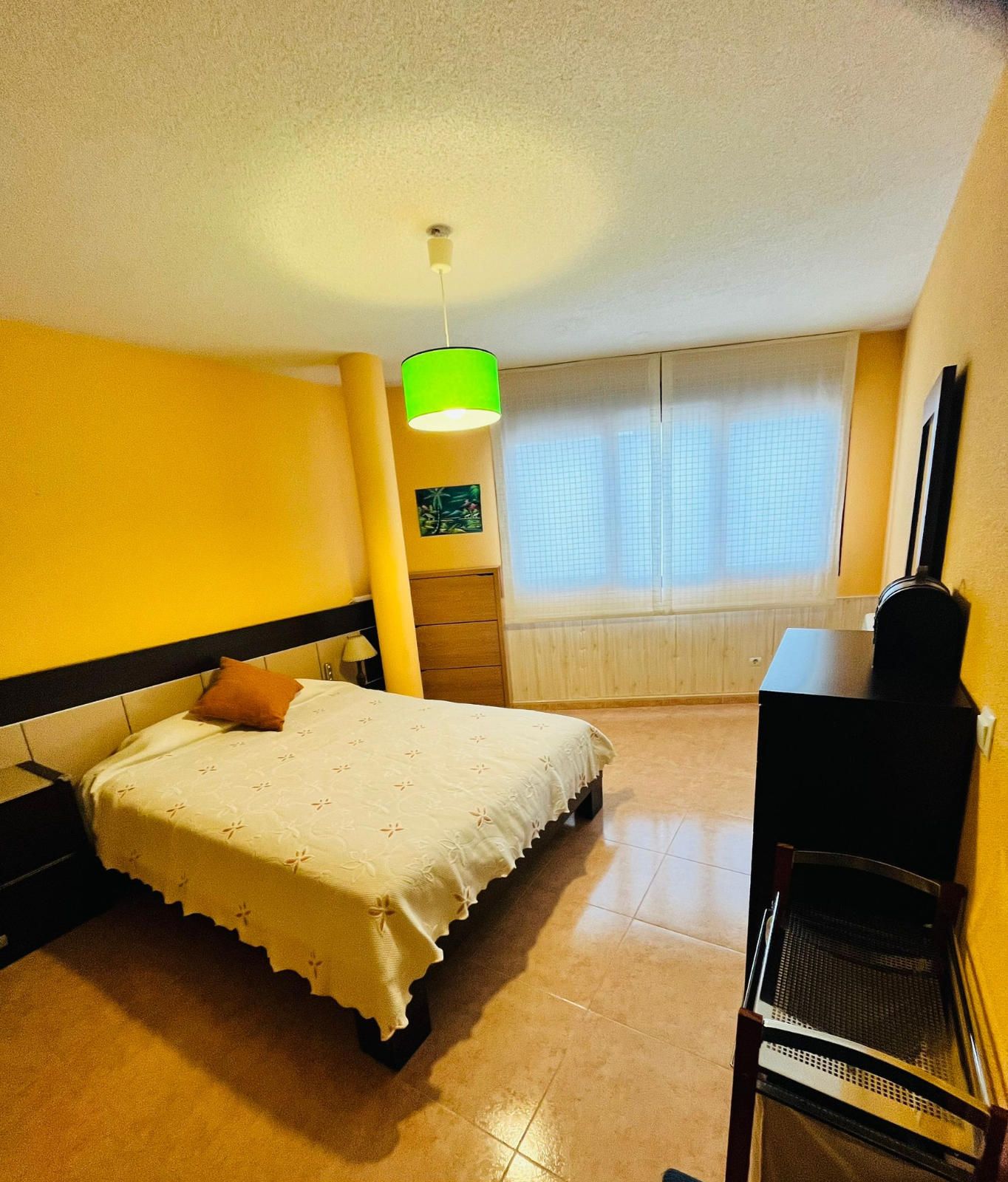PLANTA INFERIOR - Recibidor que da acceso a un amplio salón muy luminoso con un gran ventanal a la calle, cocina totalmente amueblada y muy bien aprovechada, que también tiene luz natural a través de una ventana a la calle, una habitación con armario empotrado y un baño completo con ventana.
